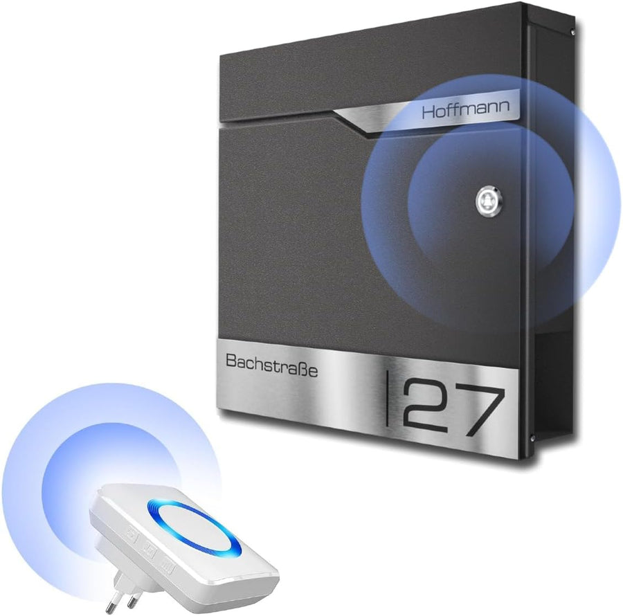 Metzler individueller Briefkasten mit Funkklingel und Steckdosen-Funk-Empfänger inklusive Gravur in