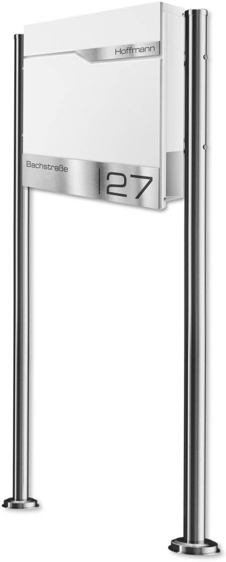 Metzler Standbriefkasten in Weiss - Pulverbeschichtet & mit Zeitungsfach - Inkl. Edelstahl Standfuss
