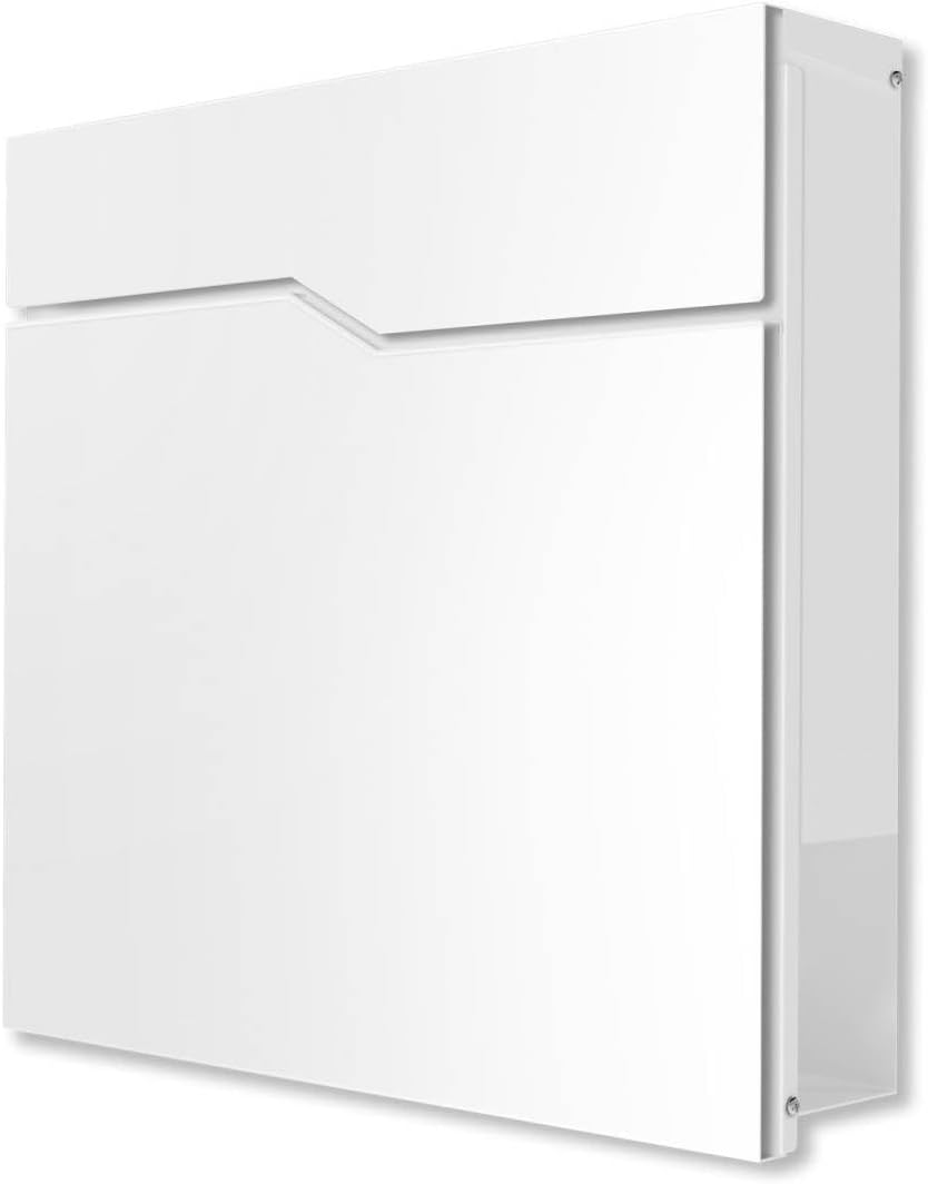 Metzler Briefkasten pulverbeschichtet in Verkehrsweiss RAL9016 - Wandbriefkasten mit Zeitungsfach -