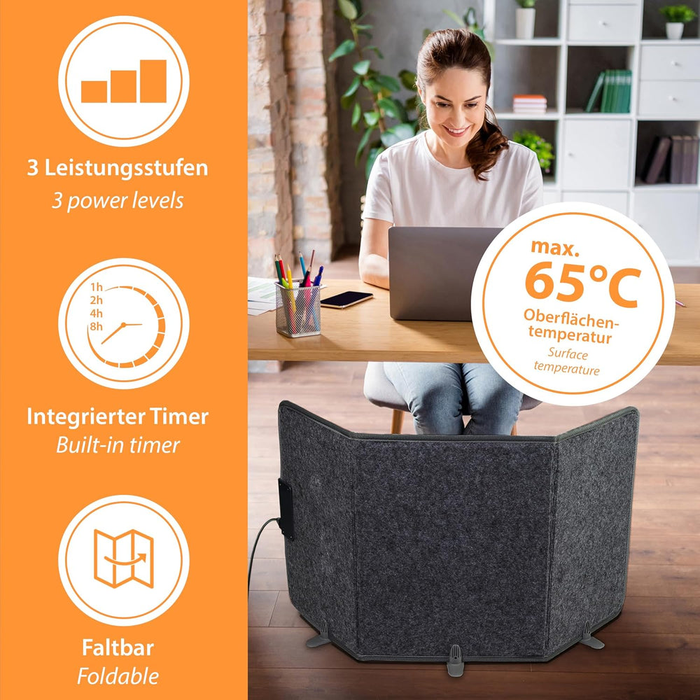 Mi-Heat Infrarot Schreibtischheizung 51x100cm Heizpaneel 165W Standheizung für Büro Schreibtisch Arb