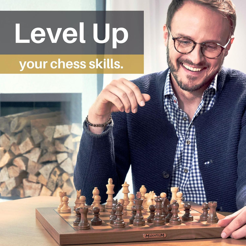 Millennium Chess Classics Exclusive (M828) – Holz-Schachcomputer mit Figurenerkennung, 2 Top-Schachp