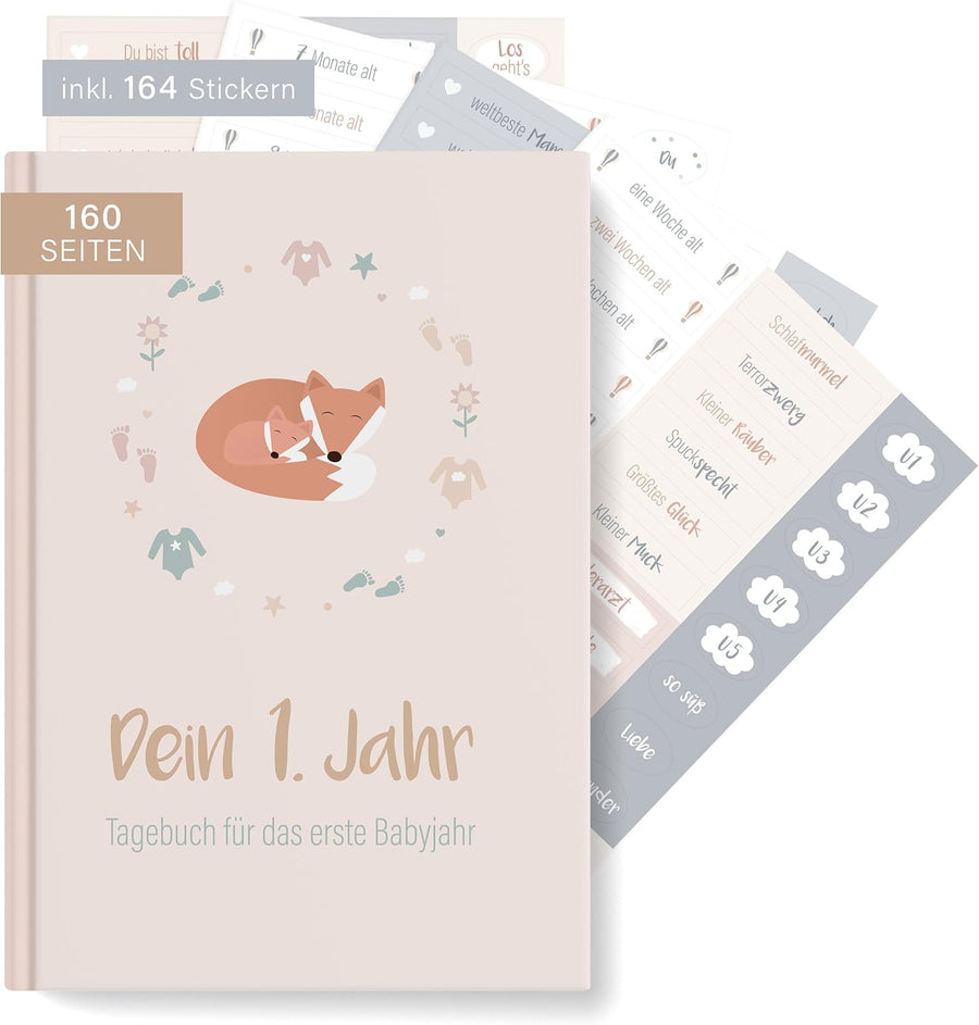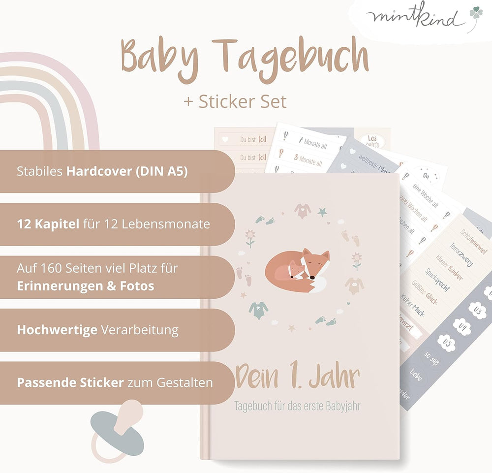 mintkind® Babyalbum "Dein erstes Lebensjahr" A5 Natur + Sticket Set | Baby Fotoalbum zum Selbstgesta
