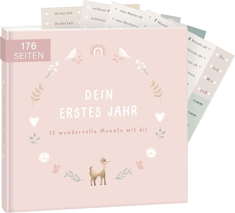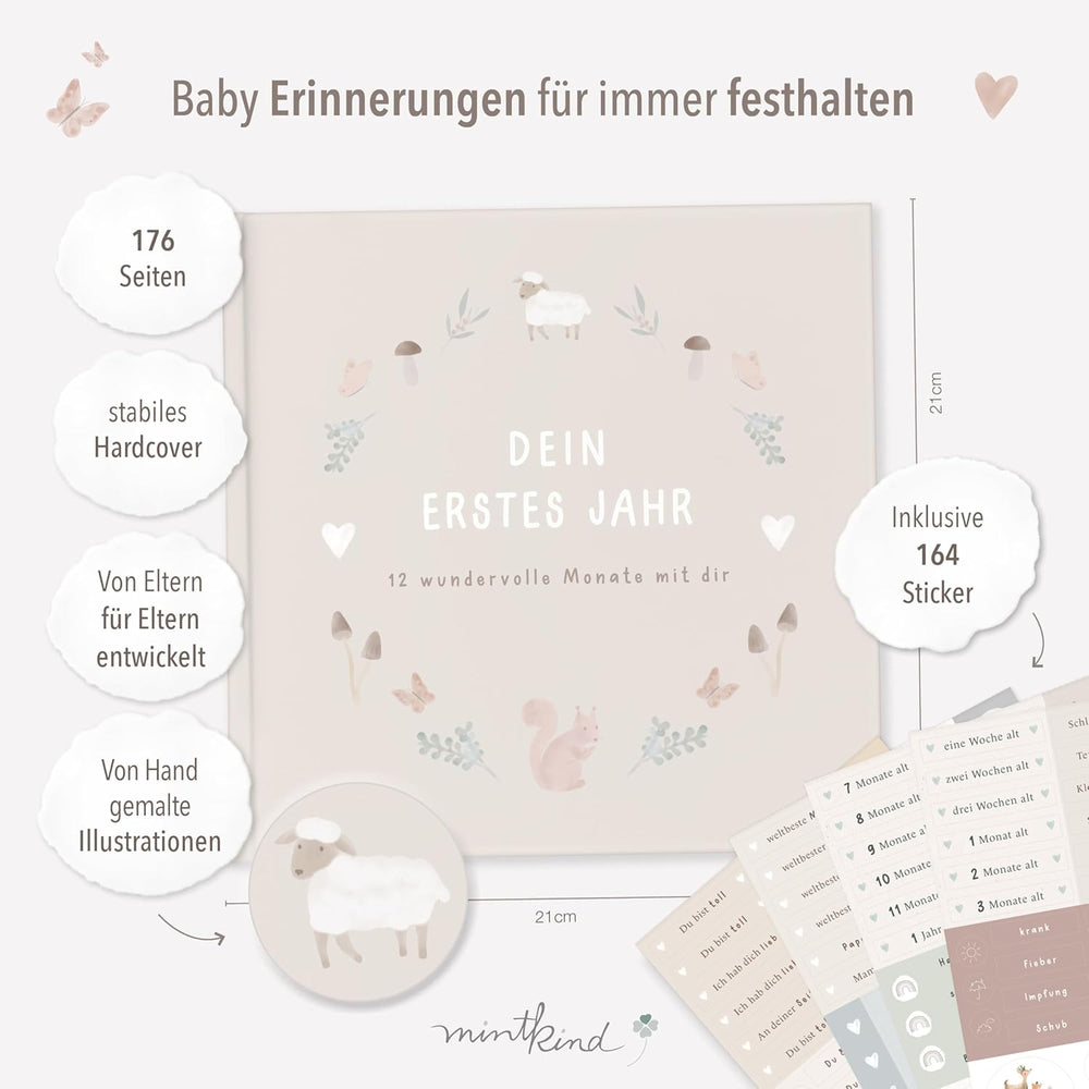 mintkind® Babyalbum "Mein erstes Lebensjahr" Wald + Sticker Set | Baby Fotoalbum zum Selbstgestalten