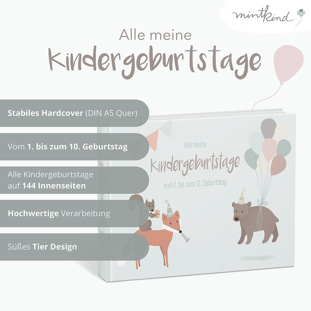 Mintkind® „Alle meine Kindergeburtstage“ Erinnerungsalbum vom 1. bis zum 12. Geburtstag | Fotoalbum
