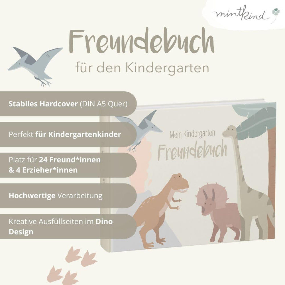 mintkind® „Meine Freunde“ Freundebuch Dino | für Junge und Mädchen | Freundschaftsbuch Kindergarten,