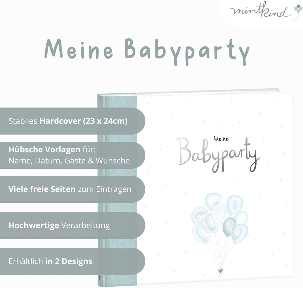 mintkind® Gästebuch "Meine Babyparty" Blau I Babyparty Geschenk Junge & Mädchen I Baby Shower & Baby