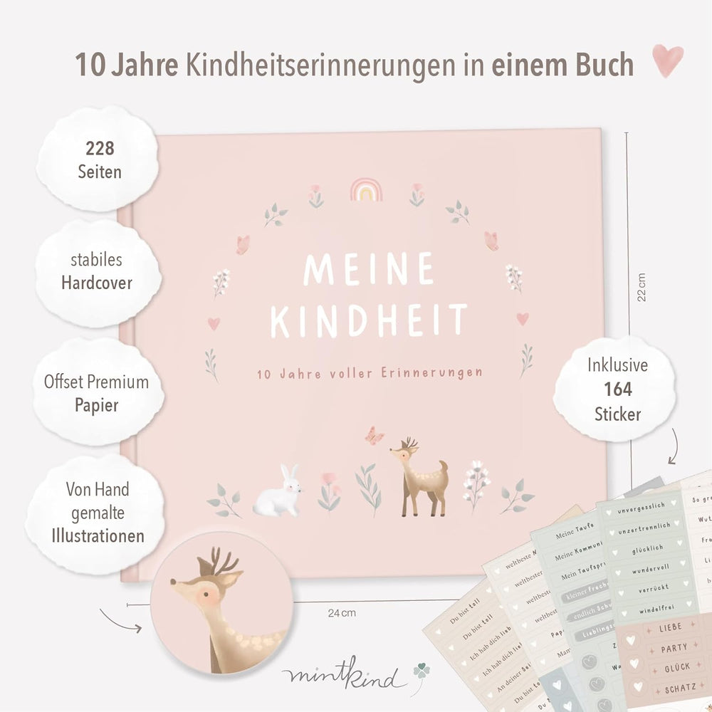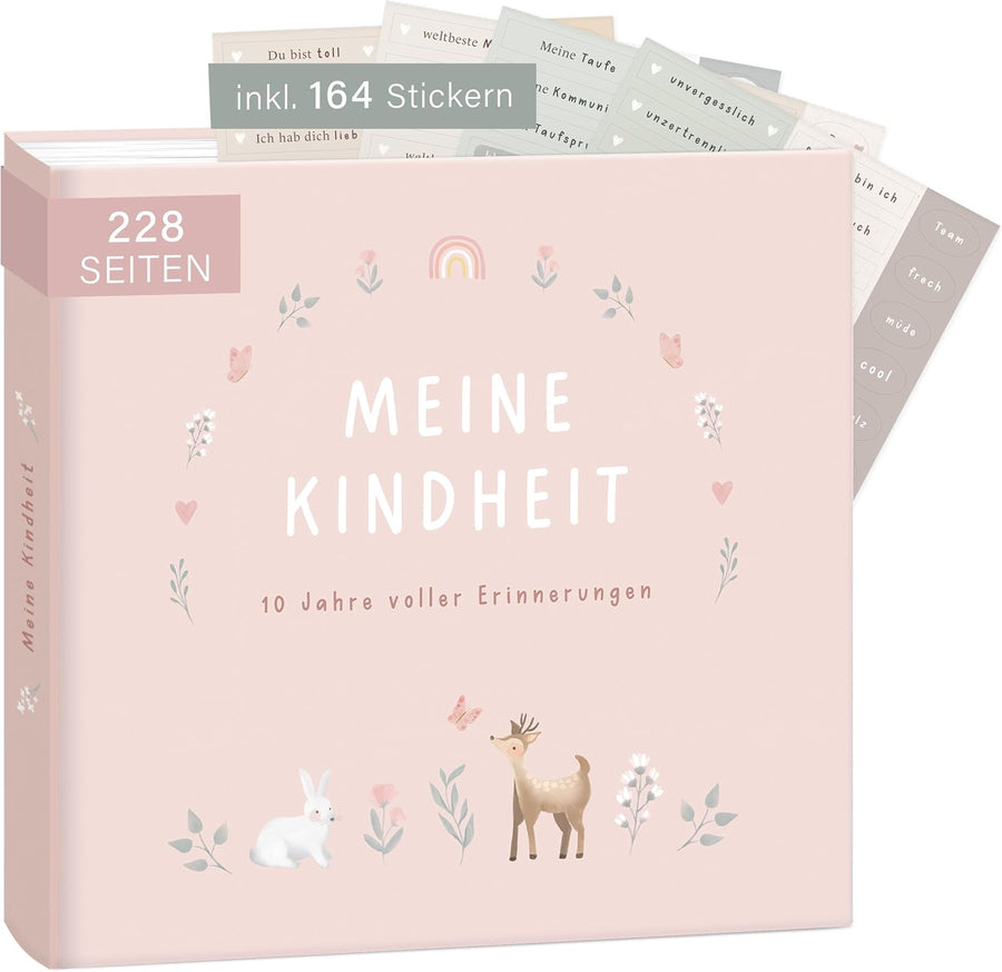 "Meine Kindheit" Erinnerungsalbum Rosa + Sticker Set I deine ersten 10 Jahre I Fotoalbum Kinder Gesc