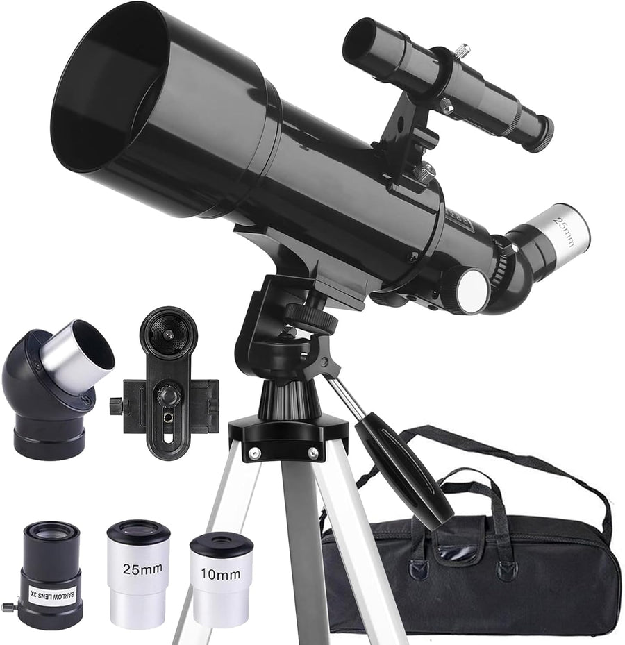Misilmp Teleskop Erwachsene, inkl. Linsen, Handyhalterung, Tragetasche, 70mm Aperture 400mm Refrakto