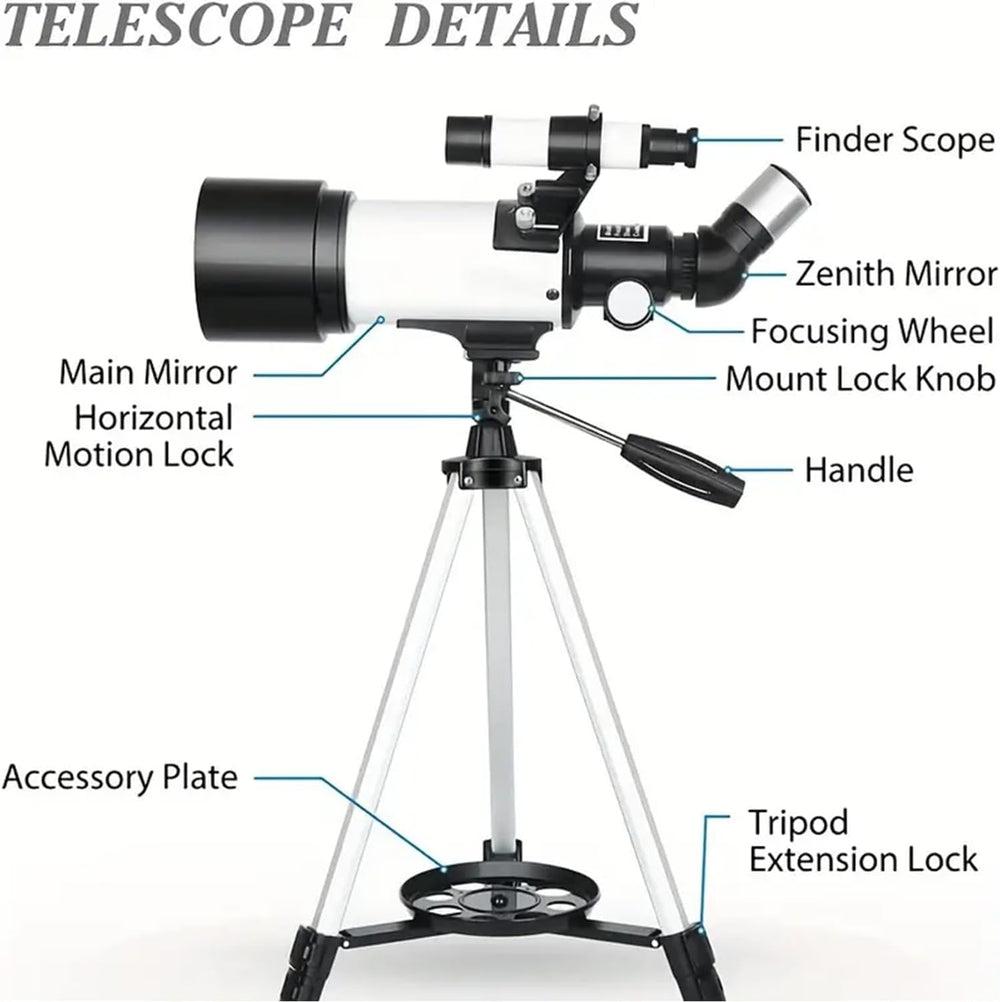 Misilmp Teleskop, inkl. Linsen, Handyhalterung, Tragetasche 70mm Aperture 400mm Refraktor Teleskope