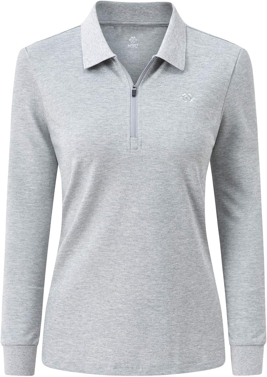 MoFiz Damen Poloshirt Langarm Baumwolle Polohemd Sport Polo Wintershirts mit Reissverschluss Kragen