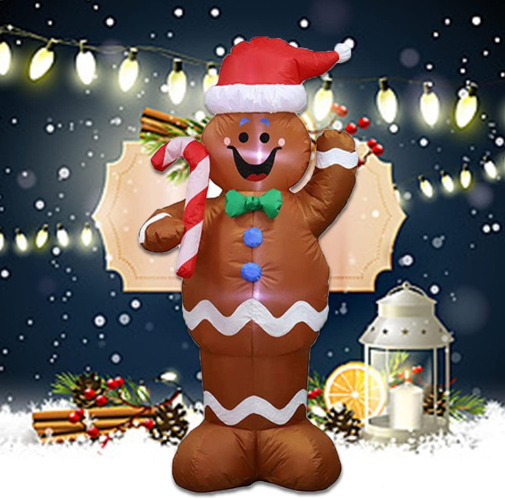 150CM Aufblasbarer Lebkuchenmann, Lebkuchen Schneemann mit LED Leuchten, Halten eines aufblasbaren S