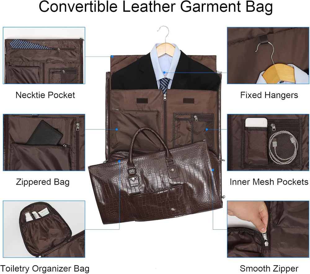 Modoker Wandelbarer Kleidersack aus Leder, Handgepäck für Reisen, Kleidersack, Geschenke für Männer,
