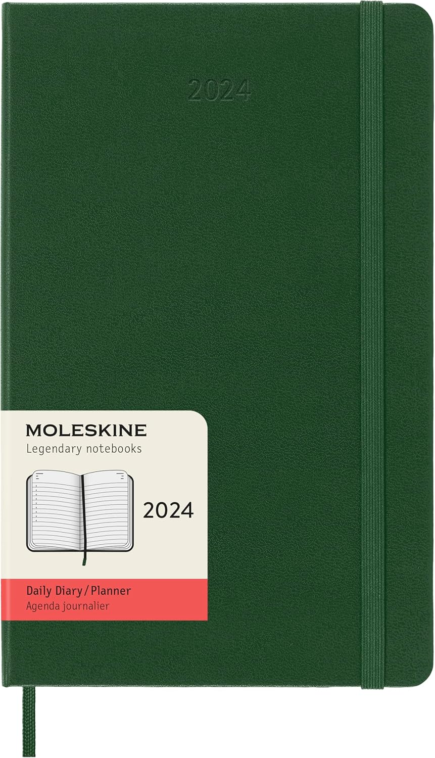 Moleskine Tagesplaner 12 Monate 2024, Planer 2024, Grosses Format 13x21, Hardcover und elastischer V