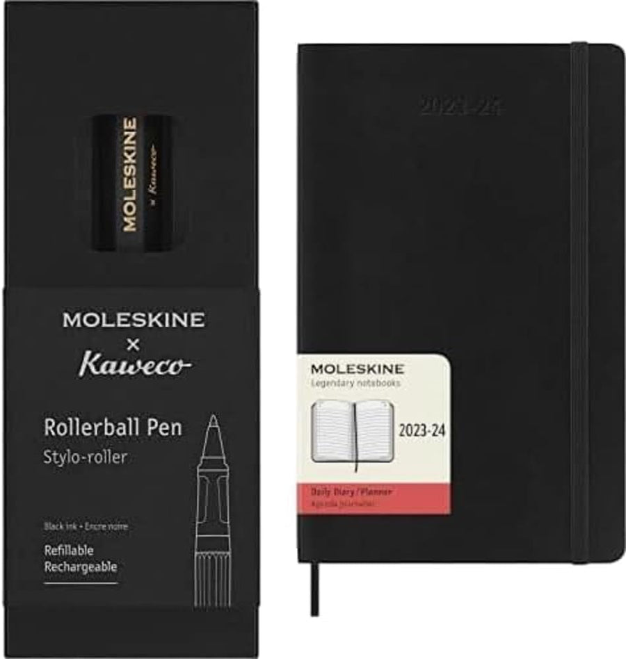 Moleskine Tagesplaner 2023-2024 + Moleskine x Kaweco Nachfüllbarer Rollerball-Stift, 18-Monats-Agend