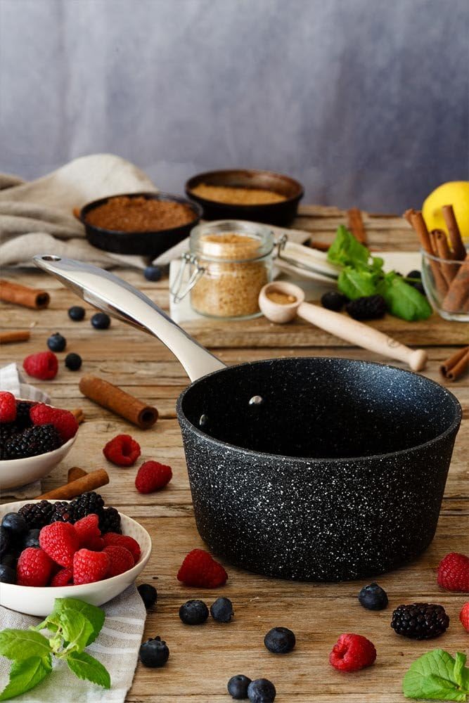 Monix Mineral Stielkasserolle, geschmiedetes Aluminium, Stein, 17 x 9,5 x 34,5 cm