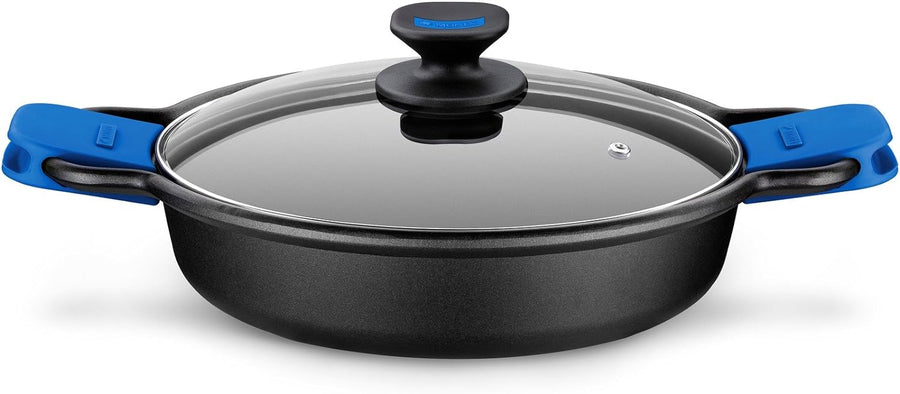 Monix Schmorkasserolle, geeignet für alle Herdarten und Induktion, Aluminium, schwarz/blau, 28. cm M