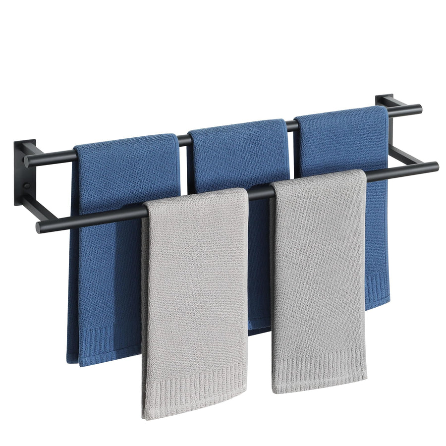 70 cm Doppelter Handtuchständer,Gebürstet Handtuchhalter Wand,Handtuchhalter Schwarz aus Edelstahl S