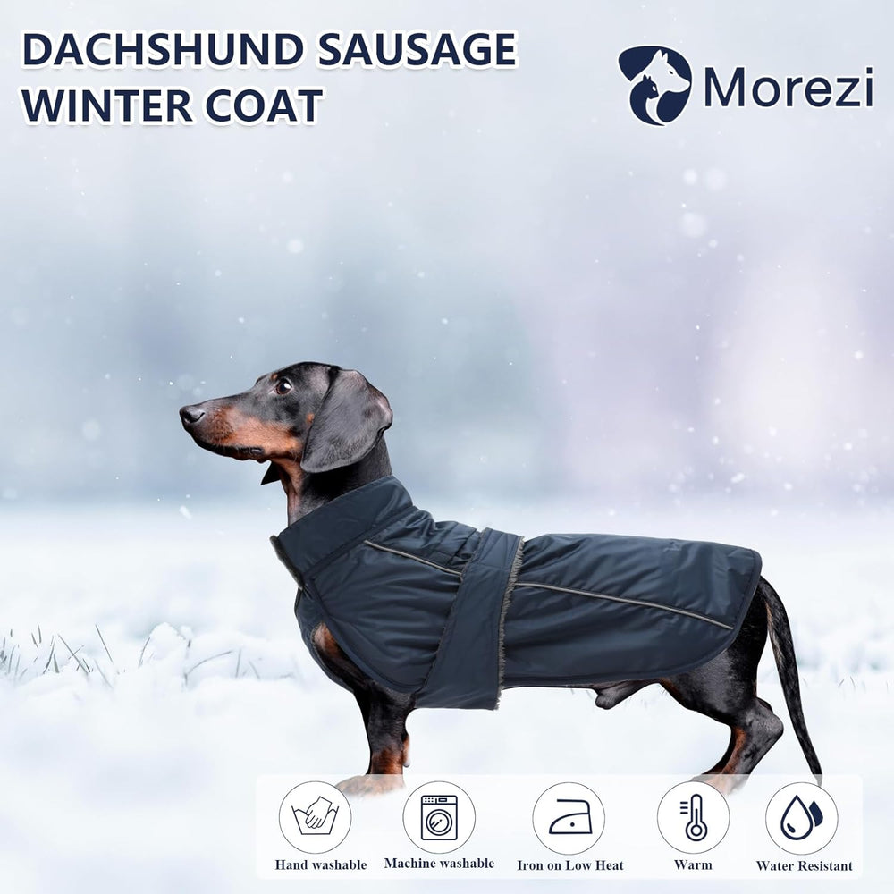 MOREZI Dackeljacke, Kaschmirfutter, Welpenwinterjacke mit Reflexbesatz und hohem Kragen, Hundeschnee