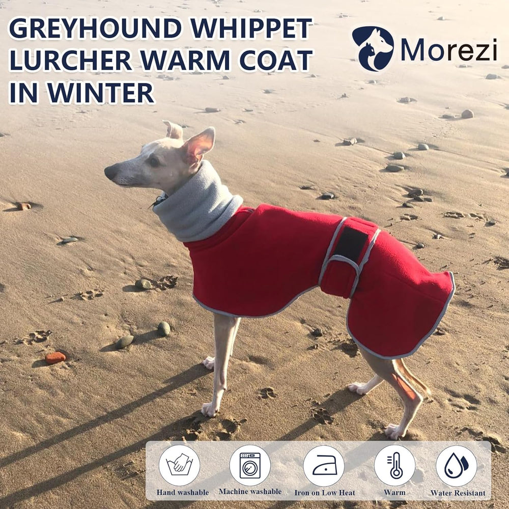 MOREZI Windhund-Wintermantel, Whippet-Mantel mit gepolstertem Fleece-Futter, Wasserabweisende Hundej