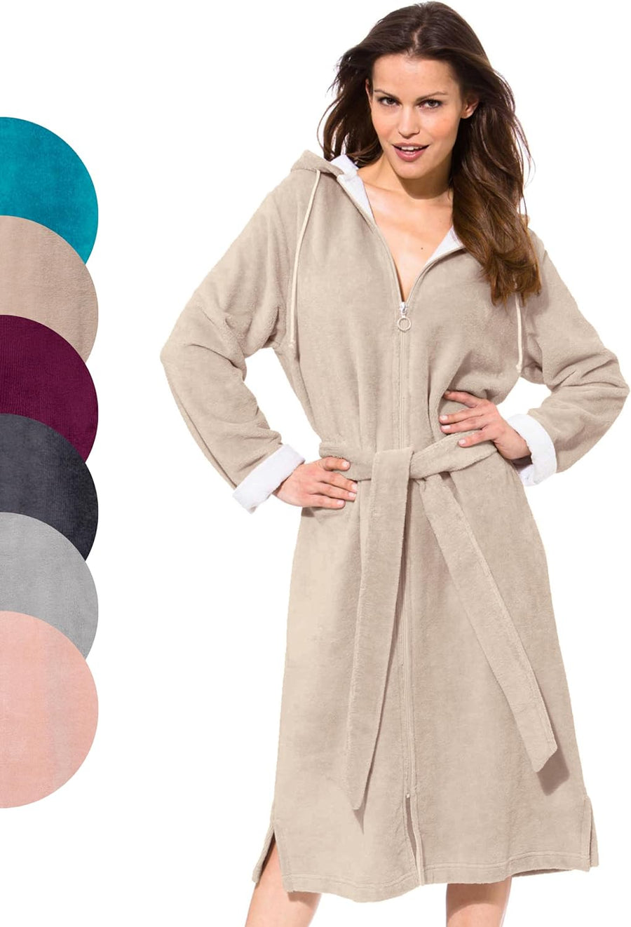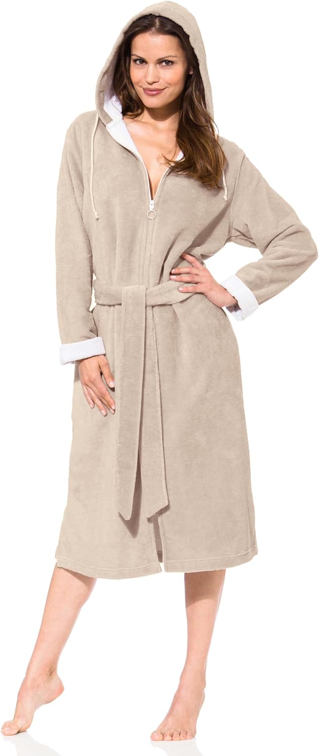 Morgenstern Bademantel Damen Reissverschluss Kapuze Frottee Velours Patrizia M Beige, M Beige