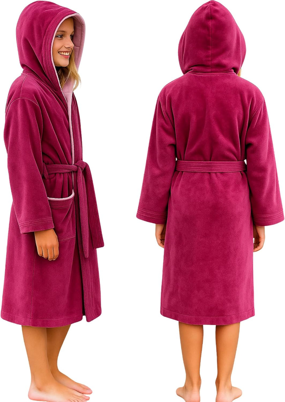 Morgenstern Bademantel Kinder & Teenager I Kapuze I 100% Baumwolle I Frottee Velours I Lang 134-140