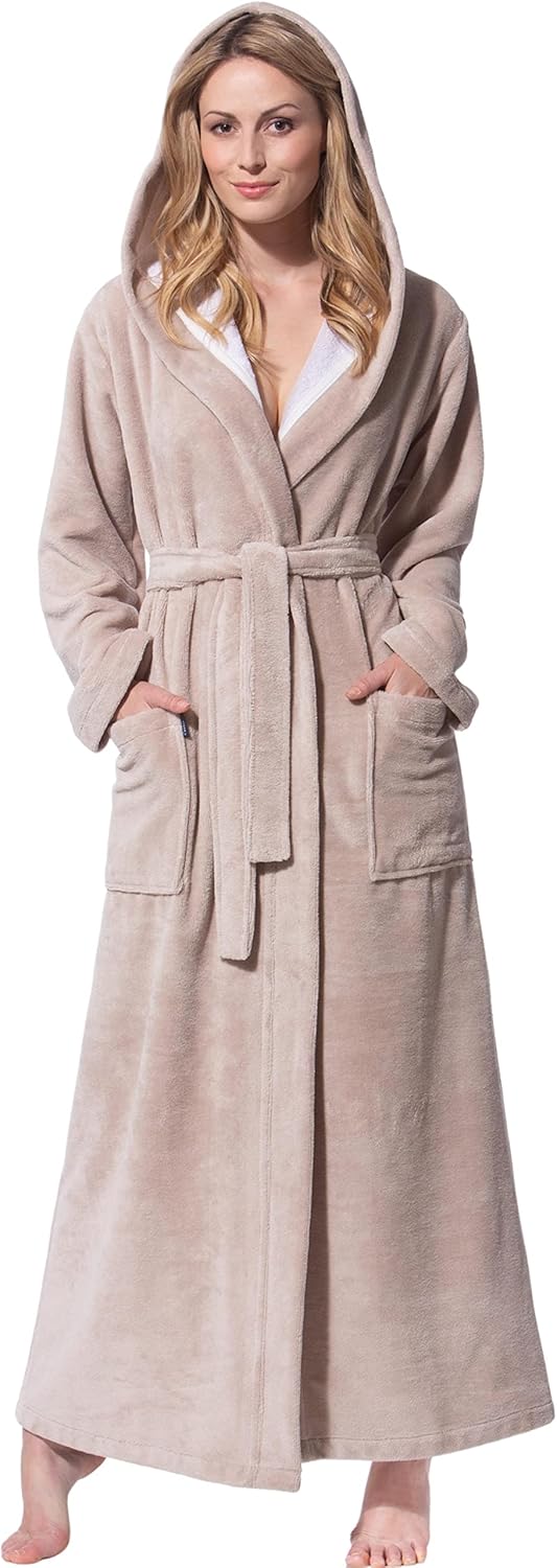 Morgenstern Bademantel Damen Extra Lang Kapuze Frottee Velours Luxus Morgenmantel S Tall Beige, S Ta
