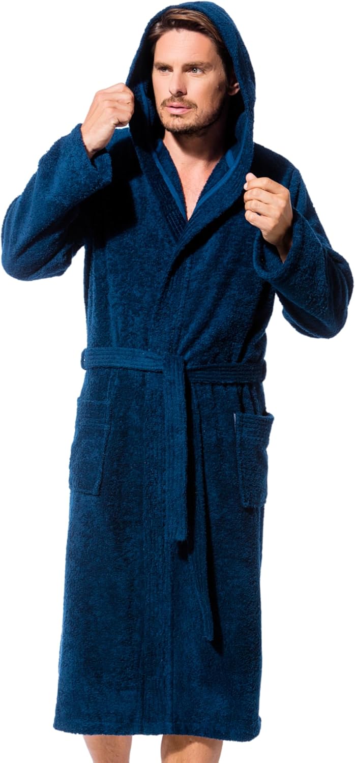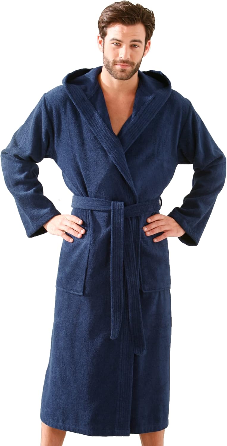 Morgenstern Bademantel Herren Kapuze Frottee 100% Baumwolle Lang Cadiz Salamanca L Marine, L Marine