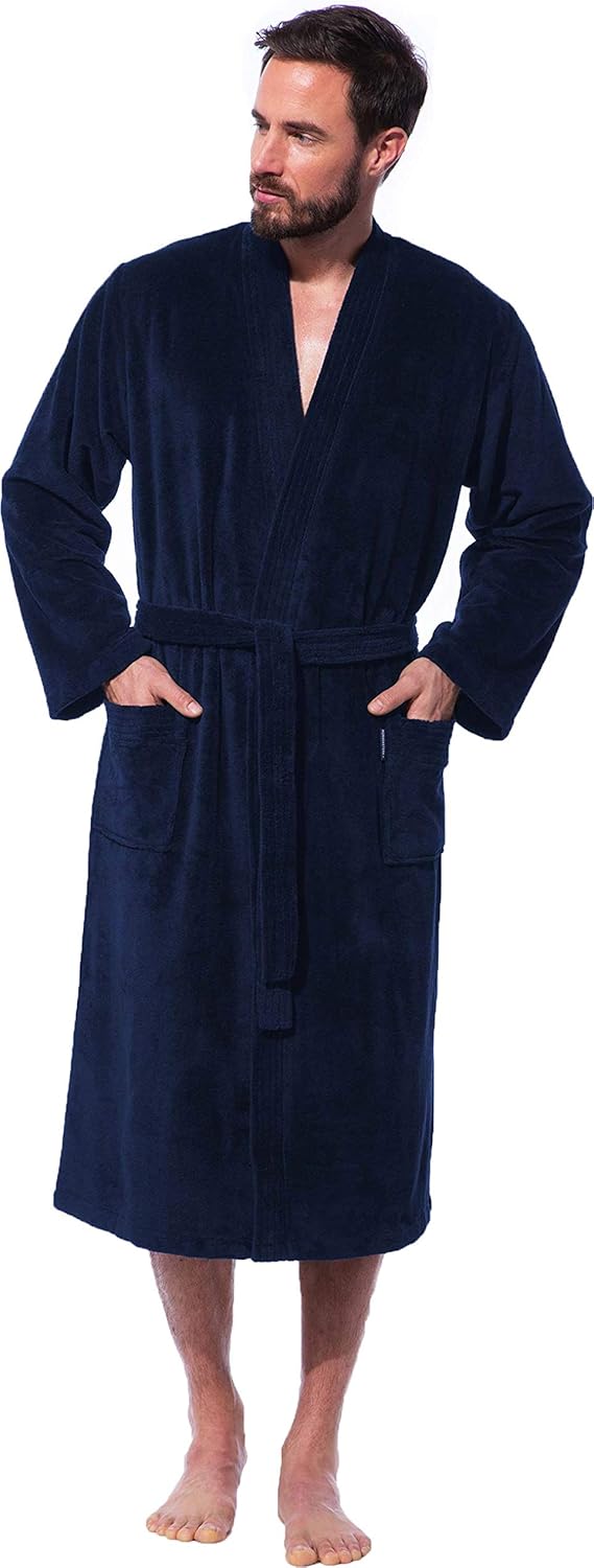 Morgenstern Kimono Bademantel Adam für Herren wadenlang L Nachtblau, L Nachtblau