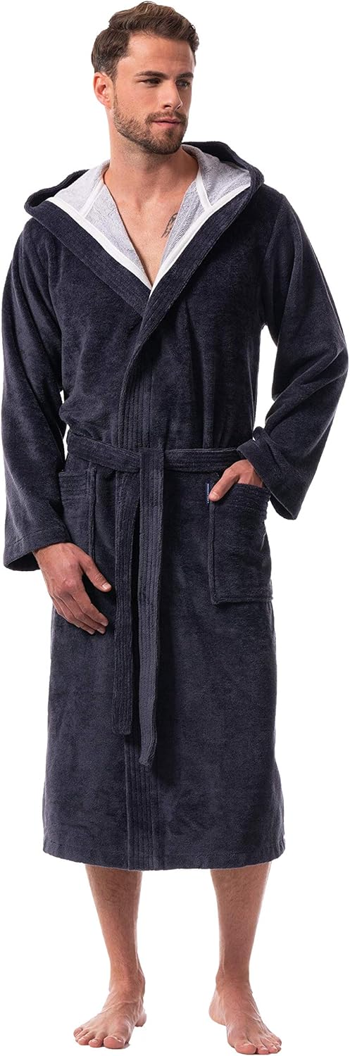 Morgenstern Bademantel Herren Kapuze Frottee 100% Baumwolle Lang Cadiz Salamanca M Grau, M Grau