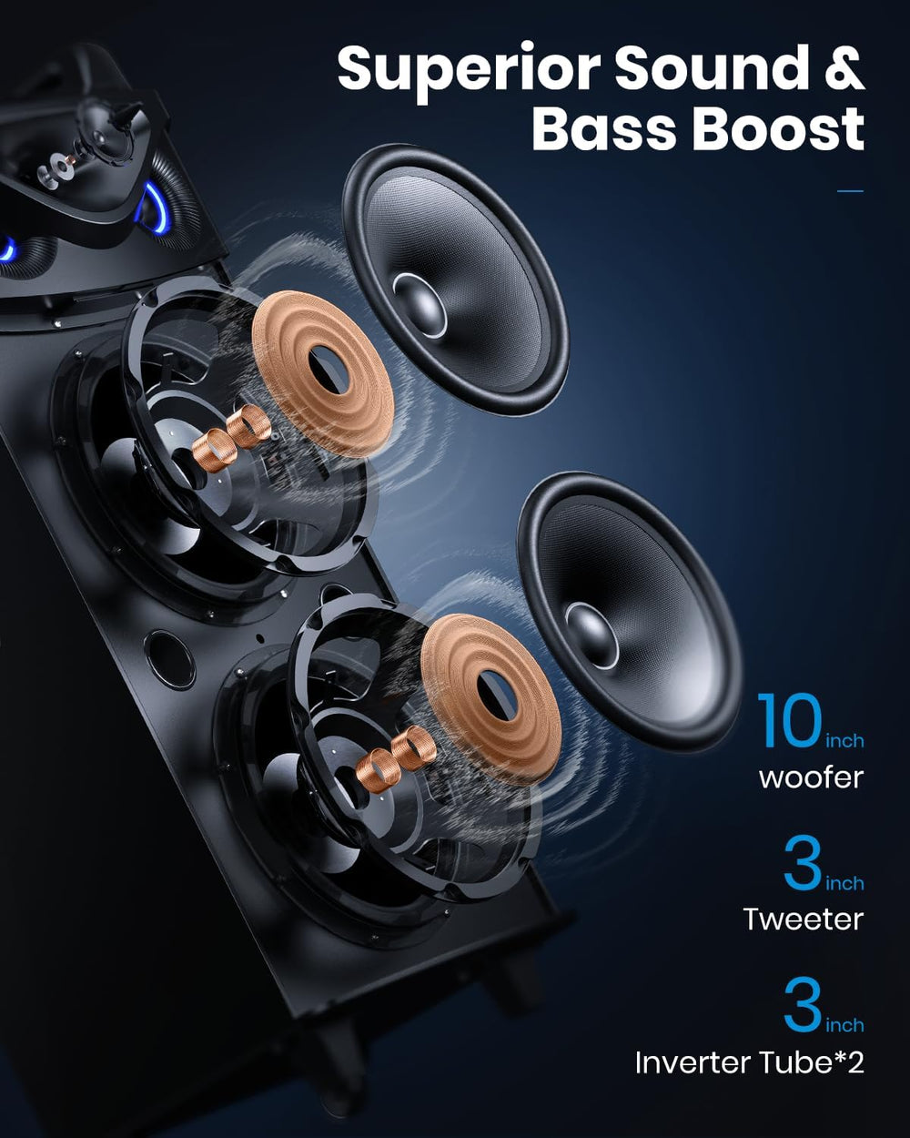 Moukey Karaoke Anlage, Doppelter Woofer PA Anlage mit 2 drahtlosen Mikrofonen, Disco Lichter, Blueto