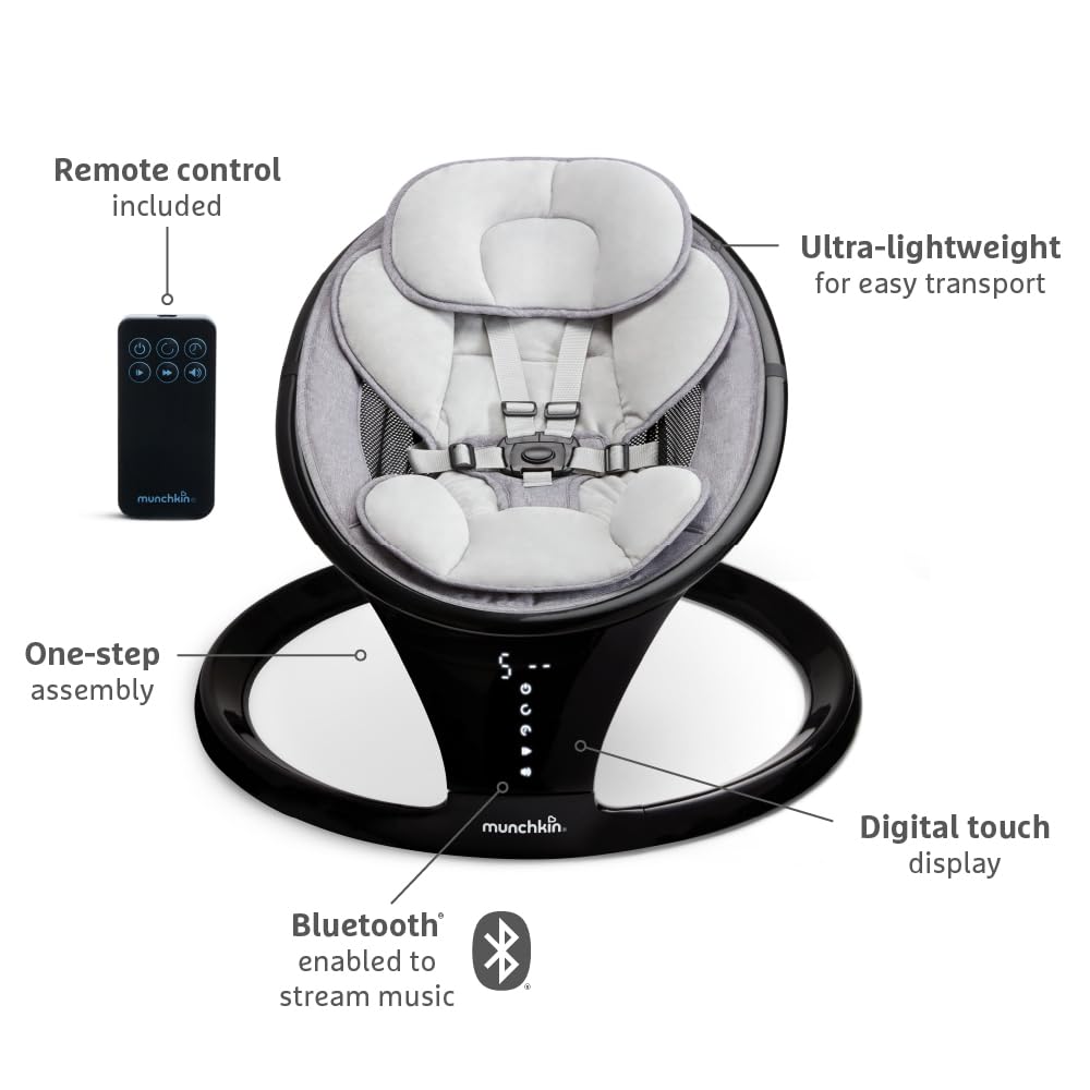 Munchkin Bluetooth-fähige, leichte Babywippe/Babyschaukel mit natürlicher Schaukelbewegung in 5 Bewe