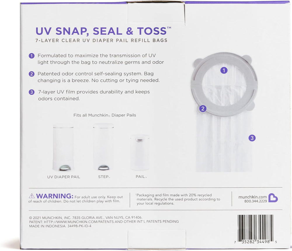 Munchkin UV Snap, Seal & Toss Windeleimer Nachfüllbeutel für 600 Windeln, 20 Stück