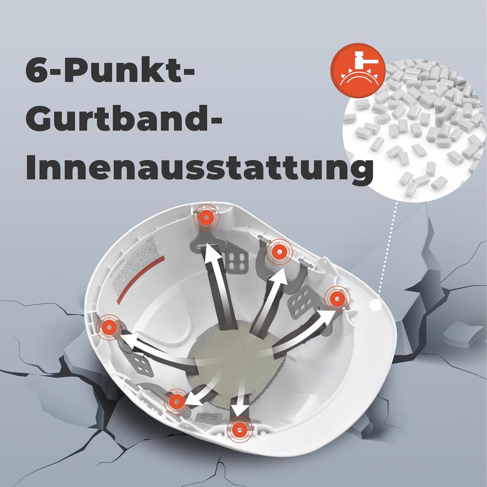 Bauhelm EN397, Mustbau Sicherheitsheilm, Arbeitshelm Schutzhelm für 53-65 cm Kopfumfang verstellbar,