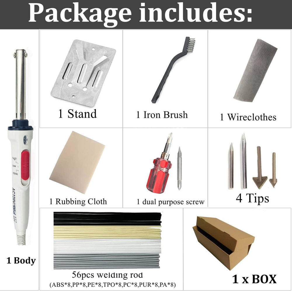 100W 2 in 1 Kunststoff Schweissen&Lötkolben Reparatur-Set mit 3 Lötkolbenspitze, 56Stck Schweissstäb