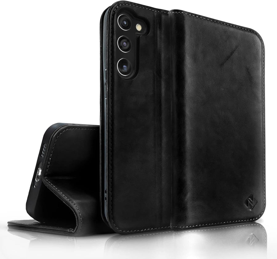 NALIA Echt-Leder Flip-Case kompatibel mit Samsung Galaxy S23 Plus Hülle, 360 Grad Bookcase, RFID-Sch