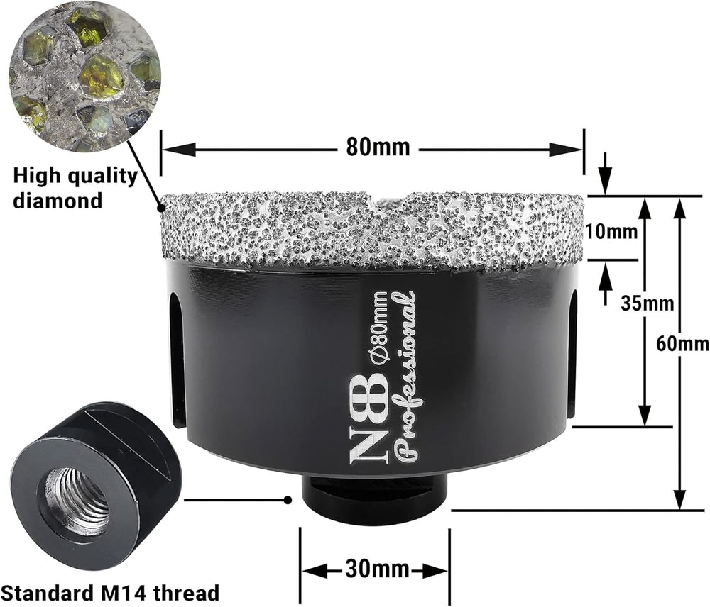NBB vakuumgelötete Diamant lochsäge mit M14 zum professionellen Trocken- oder Nass bohren auf hartem