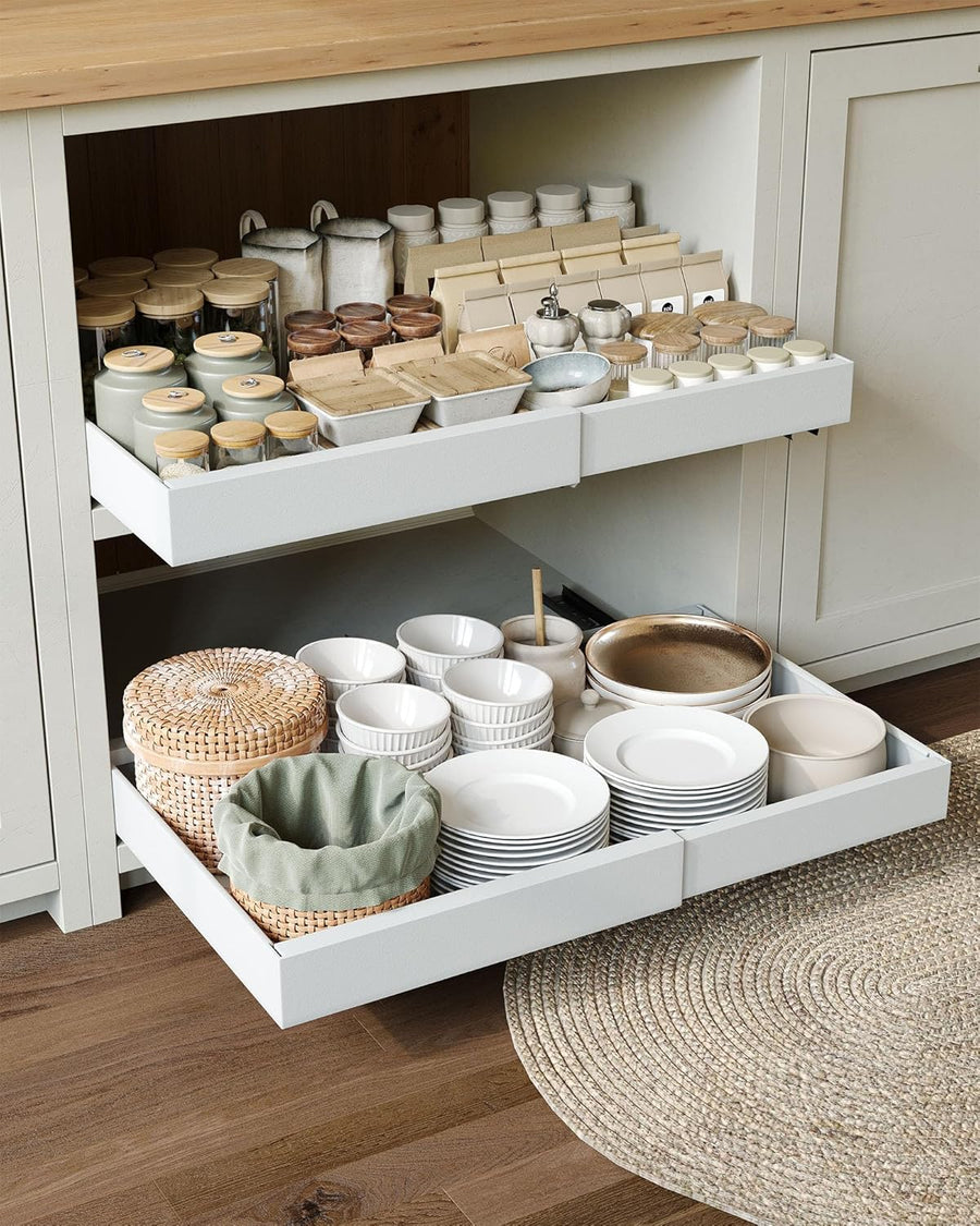 NETEL 2 Stück Teleskopschublade,Ausziehbare Schublade Küche,schubladenauszug küchenschubladen Organi
