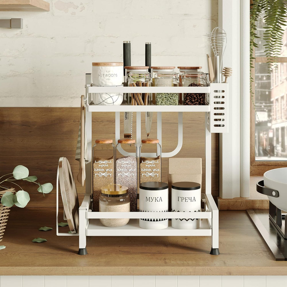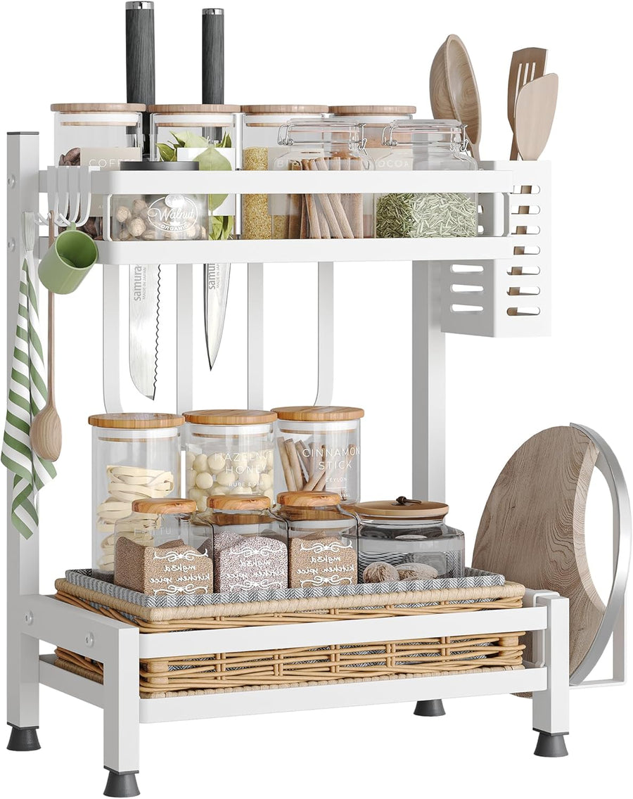 NETEL Multifunktional Gewürzregal Stehend, 2 Etagen Rostfrei Gewürzständer/Gewürzhalter, Küchenregal