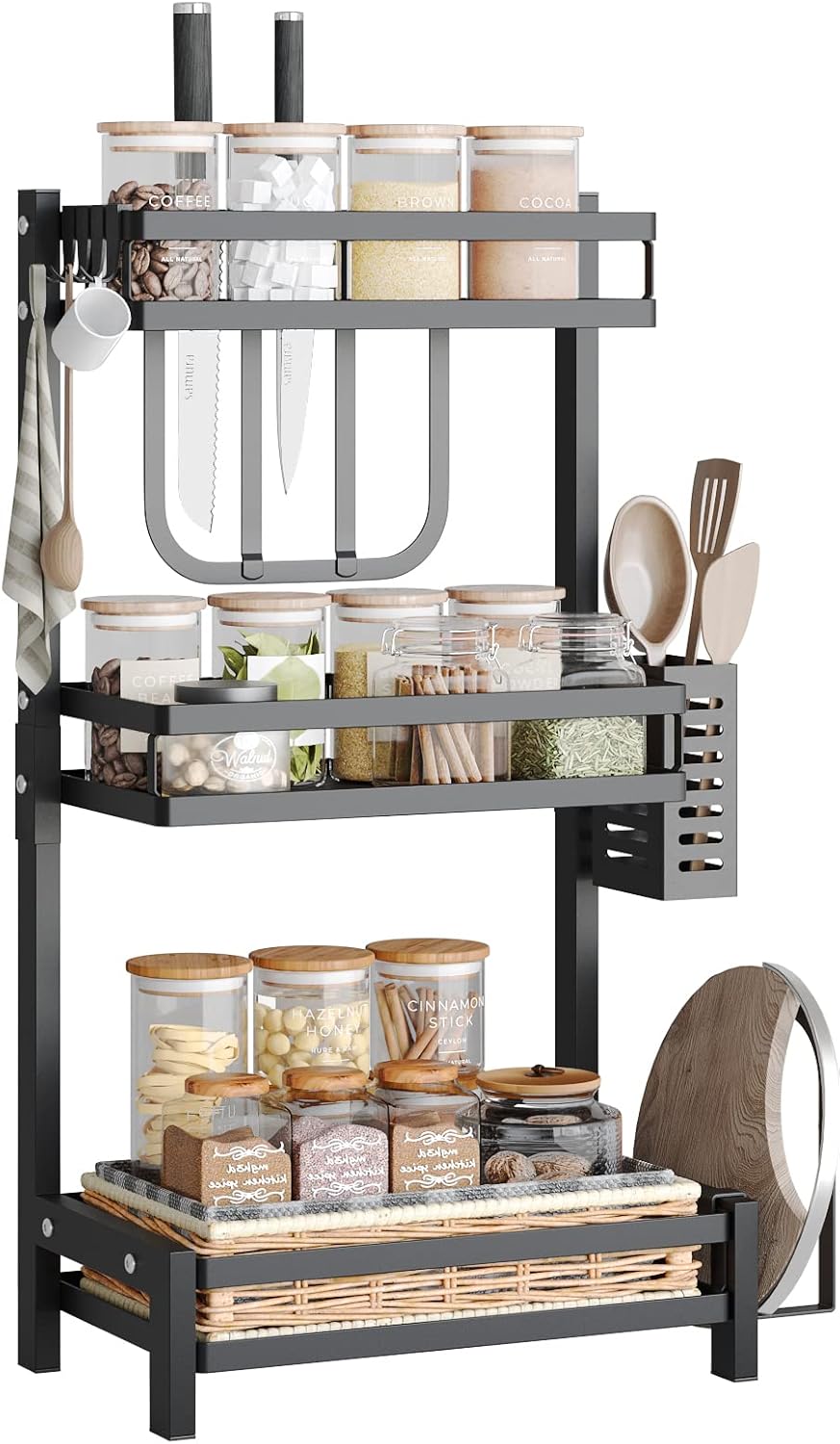 NETEL Mikrowellen Ständer 3 Stufiges Mikrowellen Halter Organizer mit Haken, Rollen Schneidebrett Ha