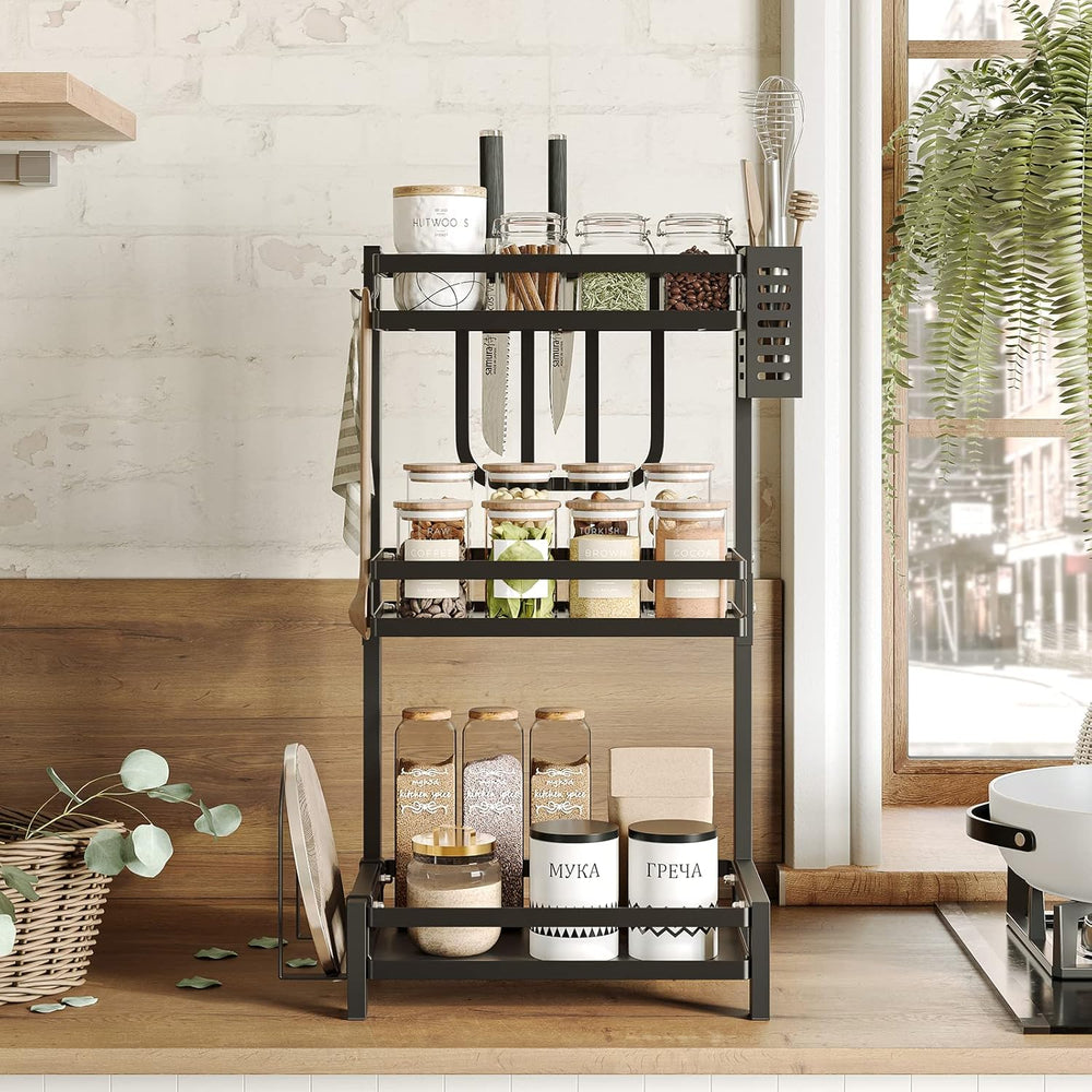 NETEL Multifunktional Gewürzregal Stehend, 3 Etagen Rostfrei Gewürzständer/Gewürzhalter, Küchenregal