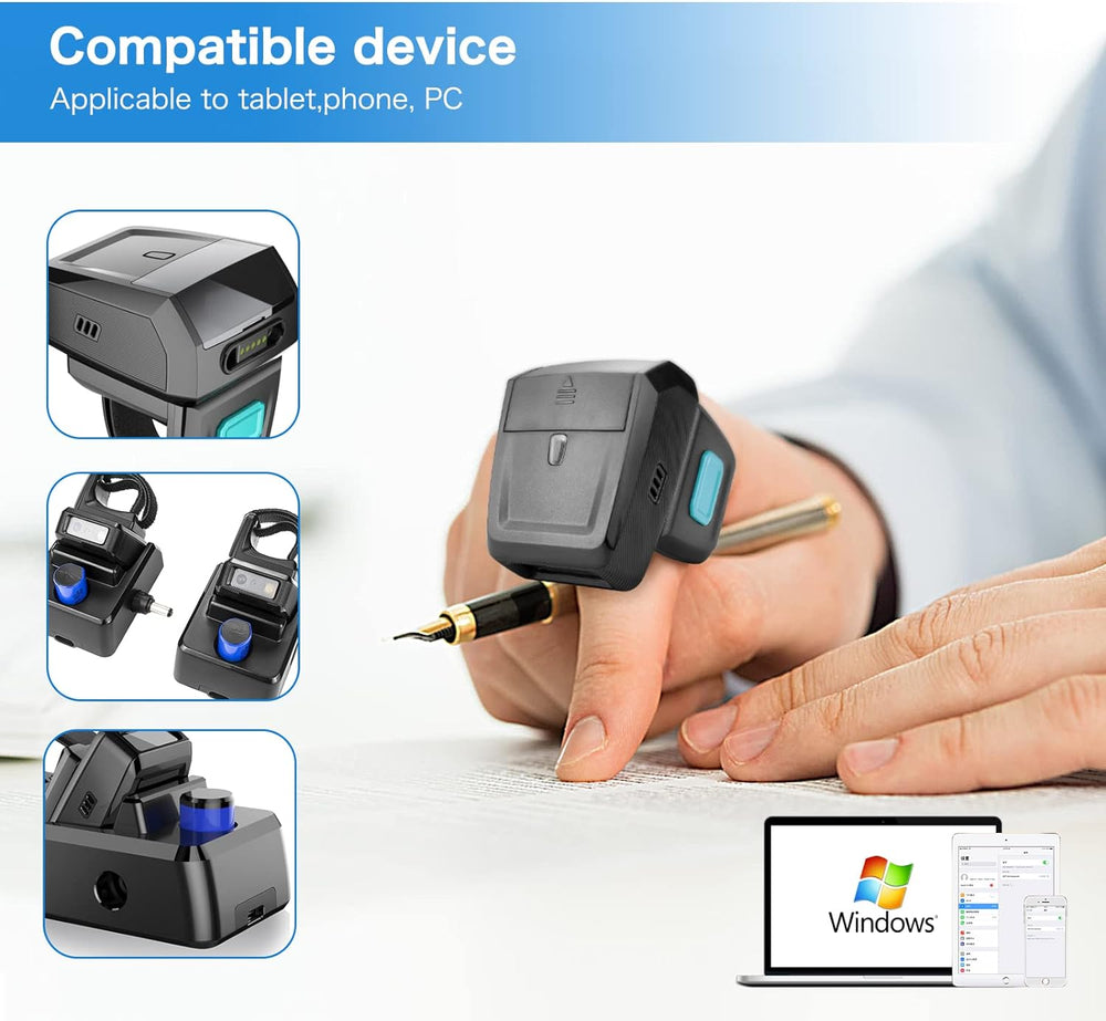NETUM Mini Wireless 2D Ring Barcode Scanner Bluetooth, tragbarer Barcodeleser mit Ladestation und in