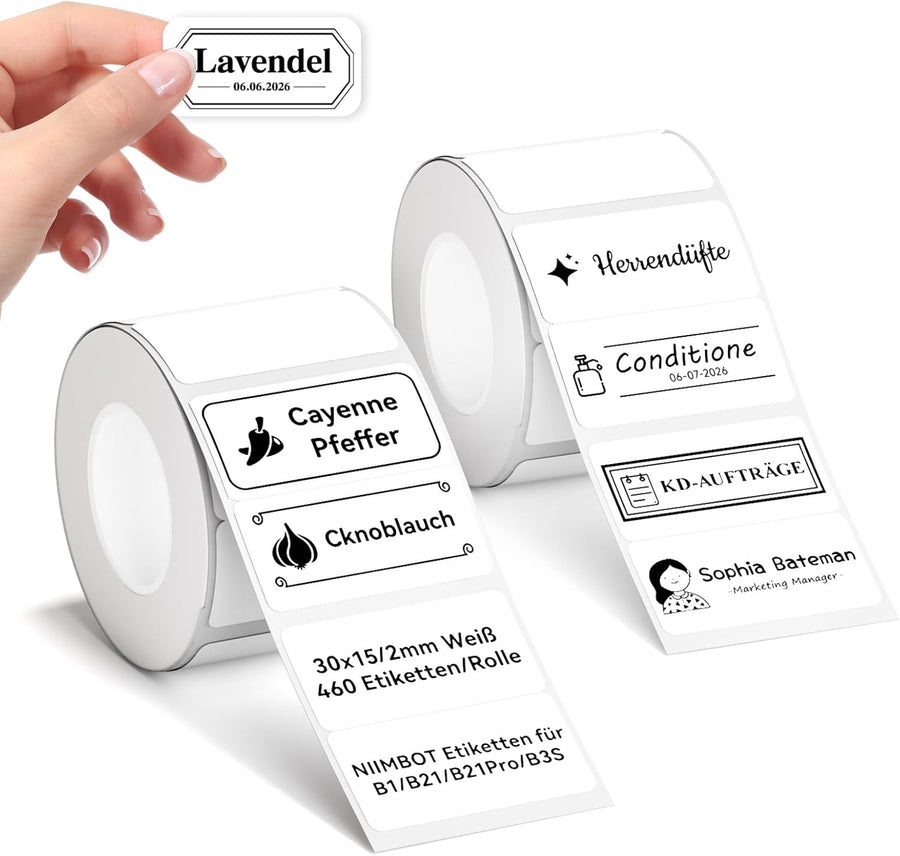 NIIMBOT Etiketten für B1 B21 B31 B3S Etikettendrucker, 30 * 15mm/2R 460 Etiketten pro Rolle, 2 Rolle