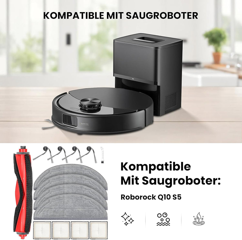 14 Stück Zubehörset für Roborock Q10 S5 / Q10 S5+ Saugroboter, 1 Hauptbürste 4 Wischpad 4 HEPA Filte