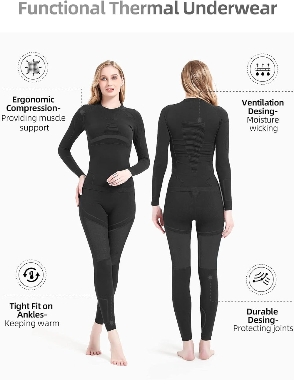 NOOYME Thermounterwäsche Damen Atmungsaktiv Thermowäsche Set Funktionswäsche Anti-bakteriell und Fle