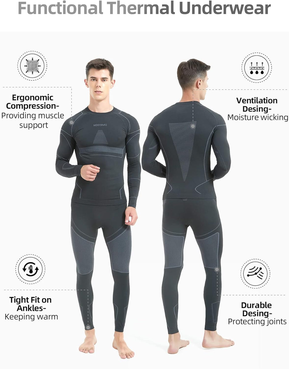 NOOYME Thermounterwäsche Herren Atmungsaktiv Thermoaktiv Funktionswäsche Herren Funktionsunterwäsche