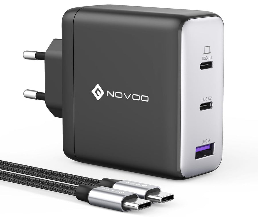 NOVOO 120W USB C Ladegerät GaN 3-Port Schnellladegerät mit 100W USB C Kabel PD Mehrfach Netzteil für