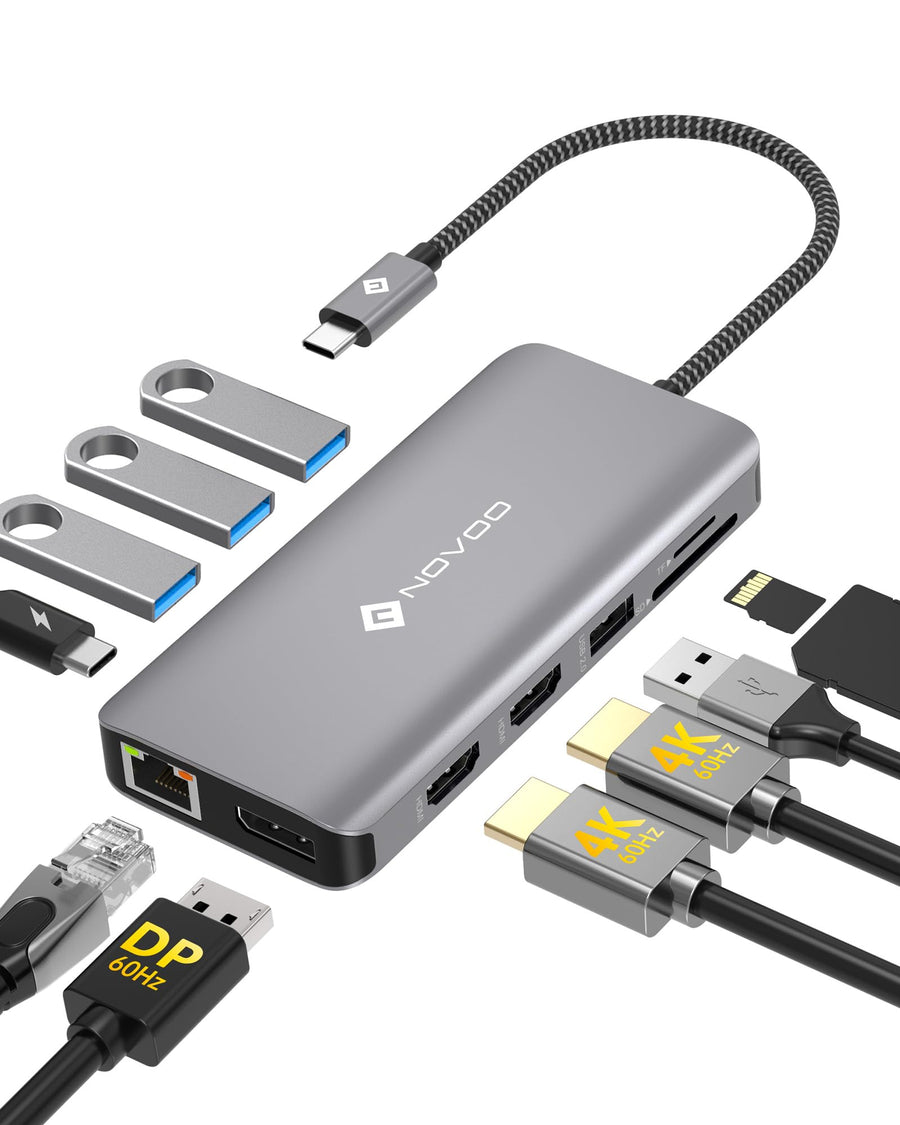 NOVOO USB C Hub mit 2 HDMI-4K, Dockingstation mit 11 Ports Typ C für Laptop, RJ45 Gigabit Ethernet,