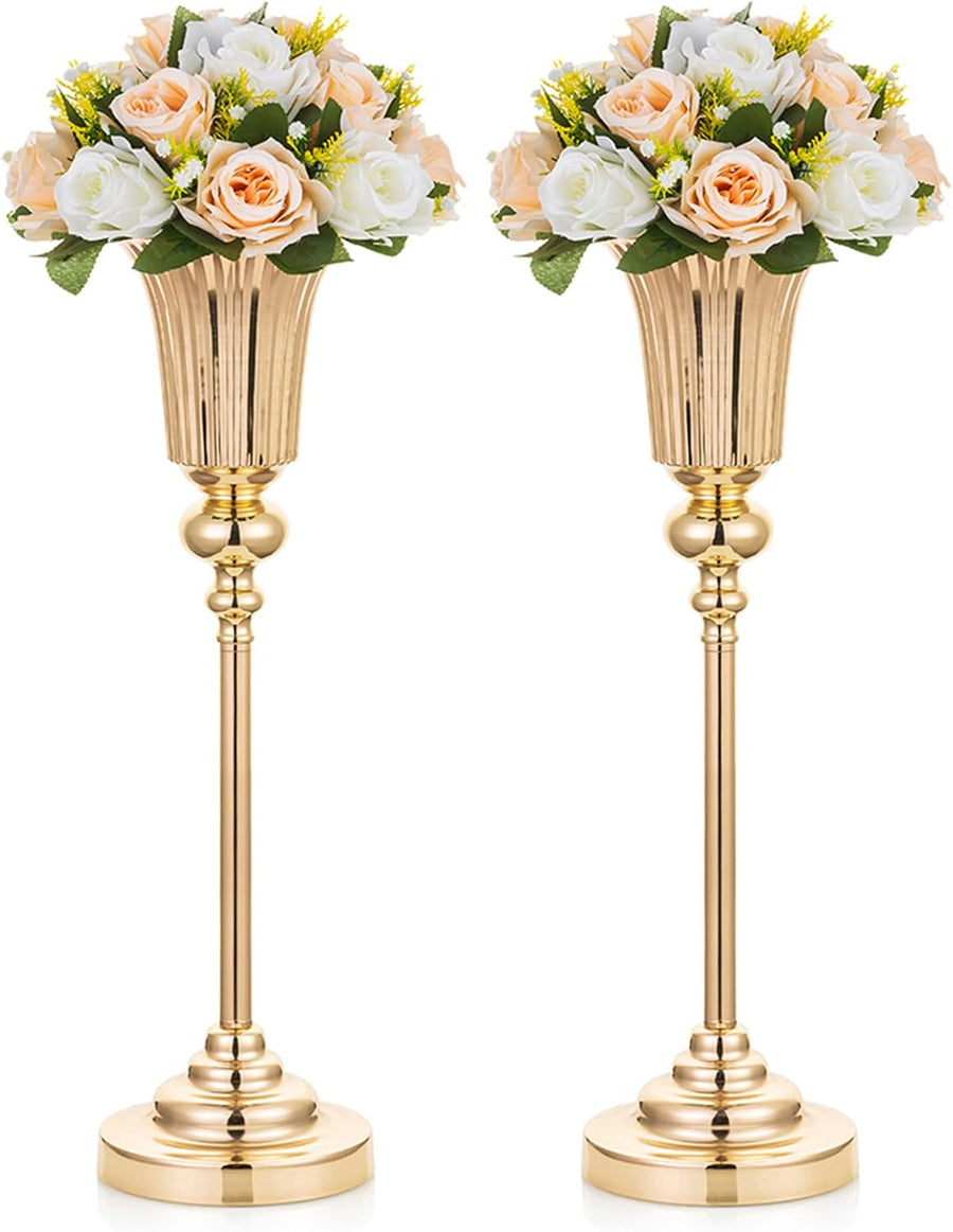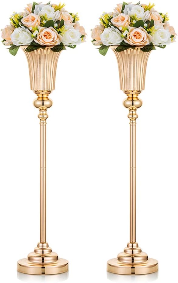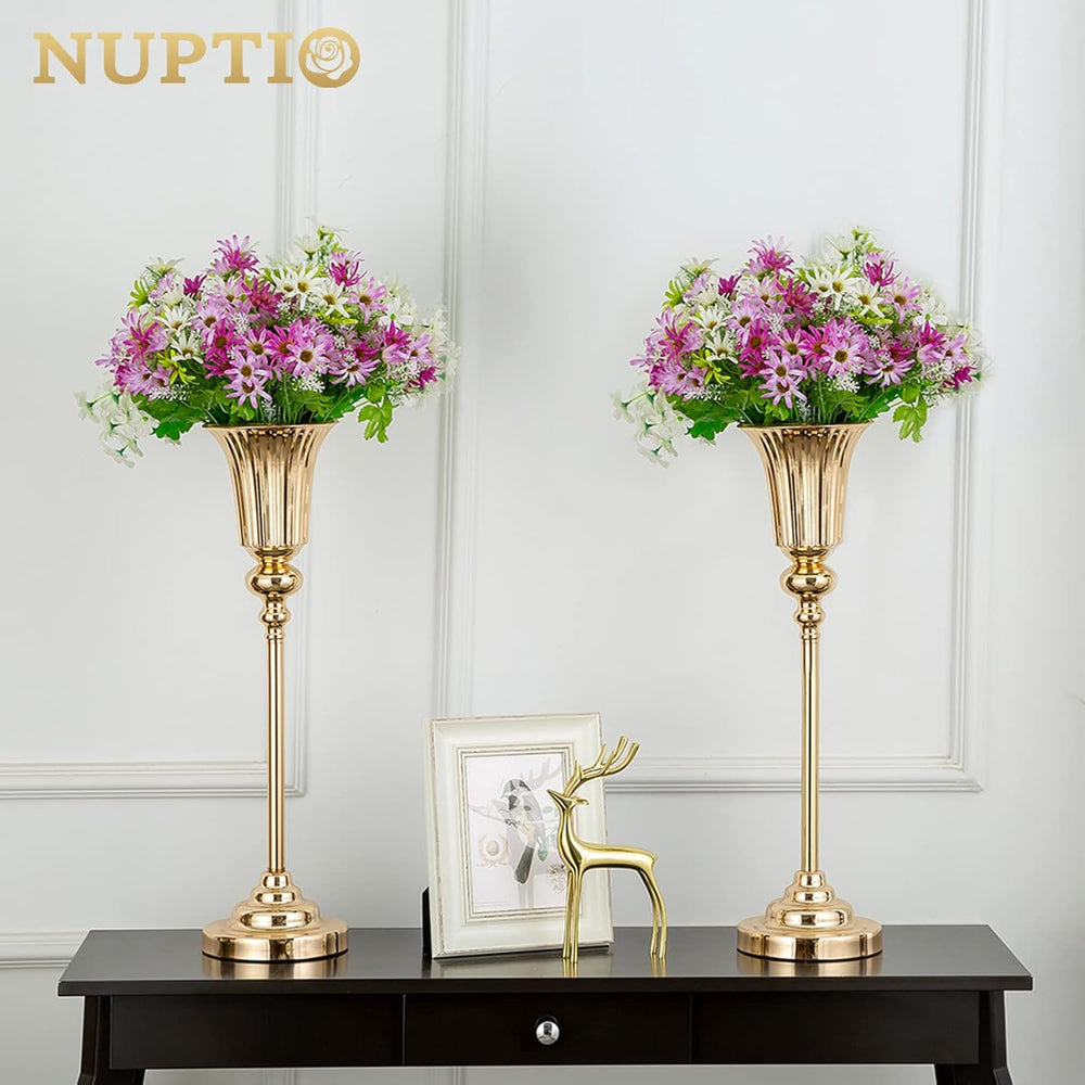 NUPTIO 2 Stück Mittelstücke für Hochzeitstisch, 61cm Hohe Metalltrompetenvase, Blumenvasen für Party