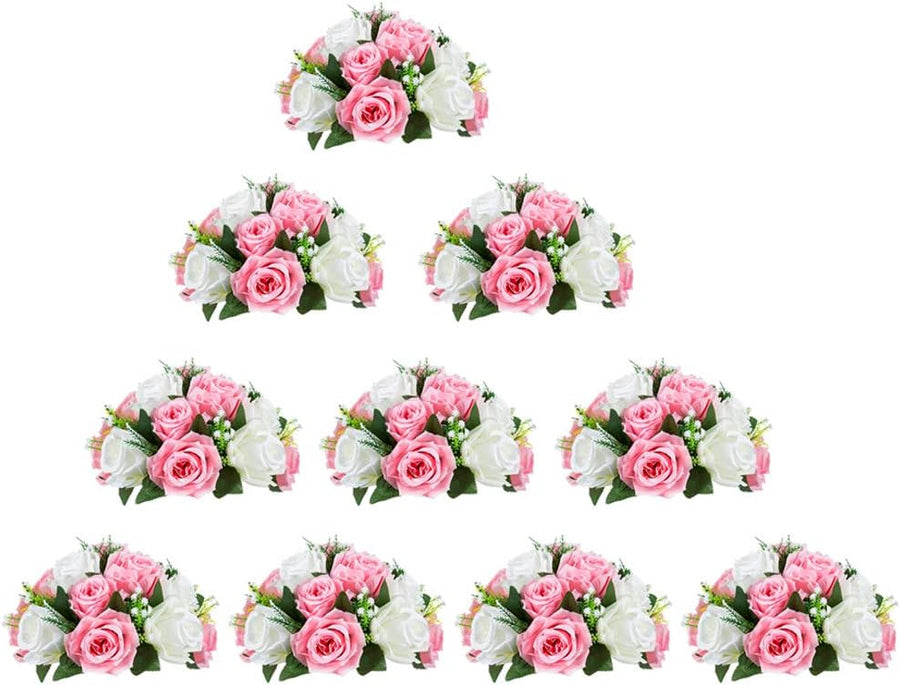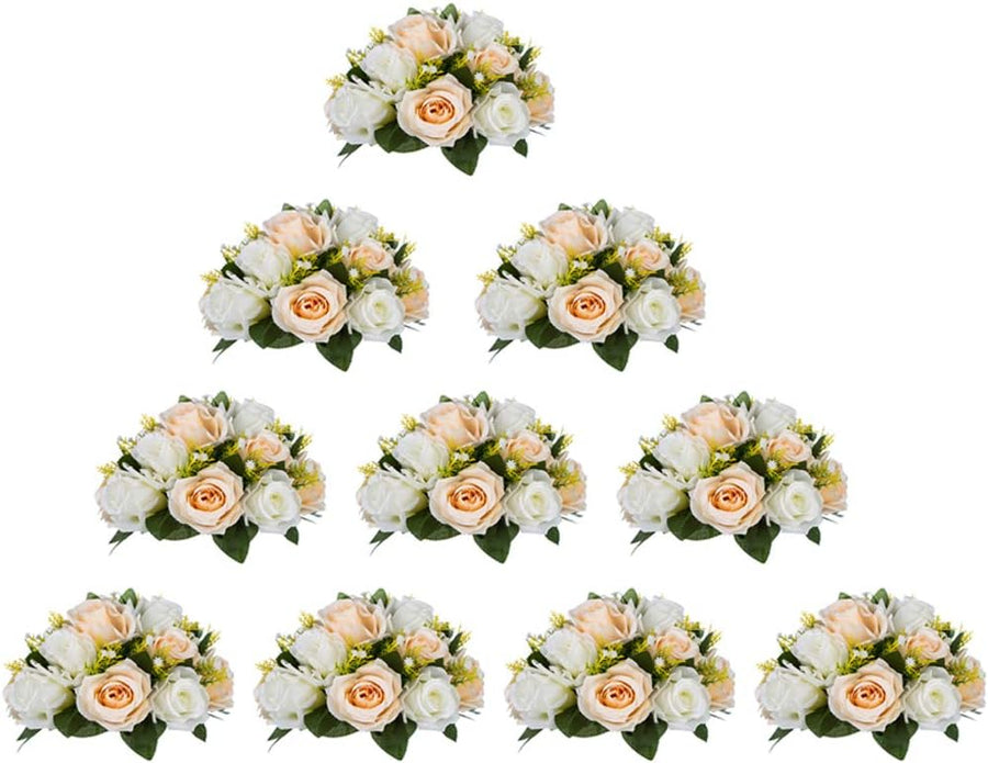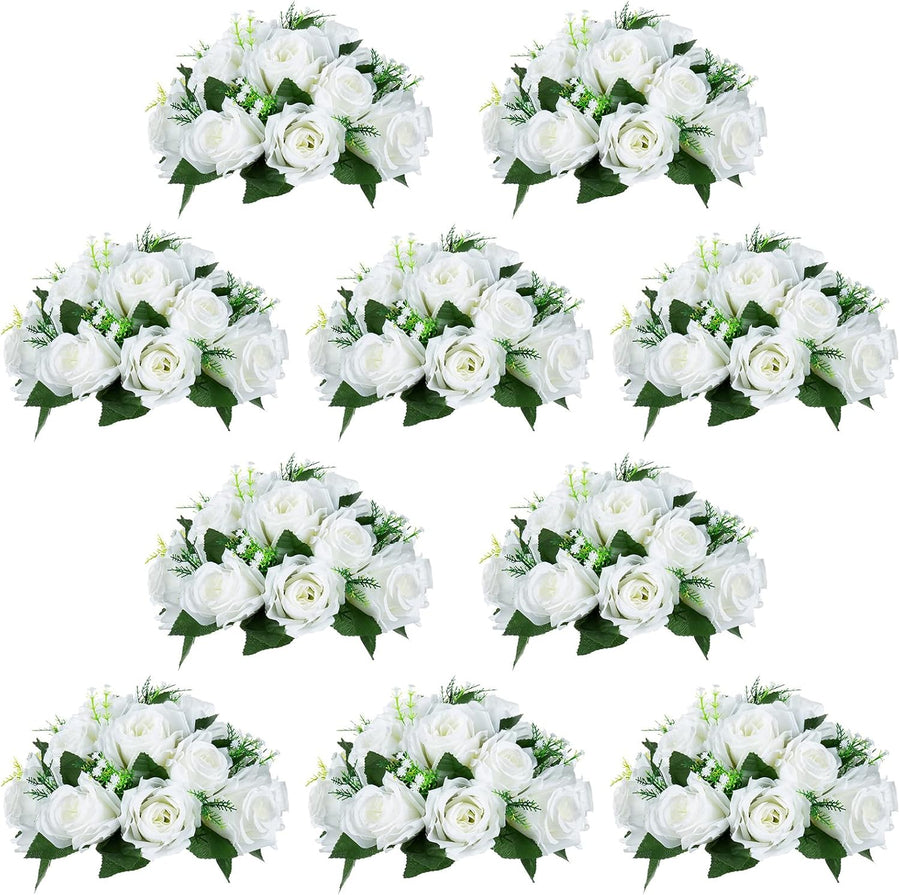 NUPTIO 10 Stück Künstliche Blumenstrauss, 15 Köpfe Kunststoff Rosen mit Sockel, Geeignet für Unser G