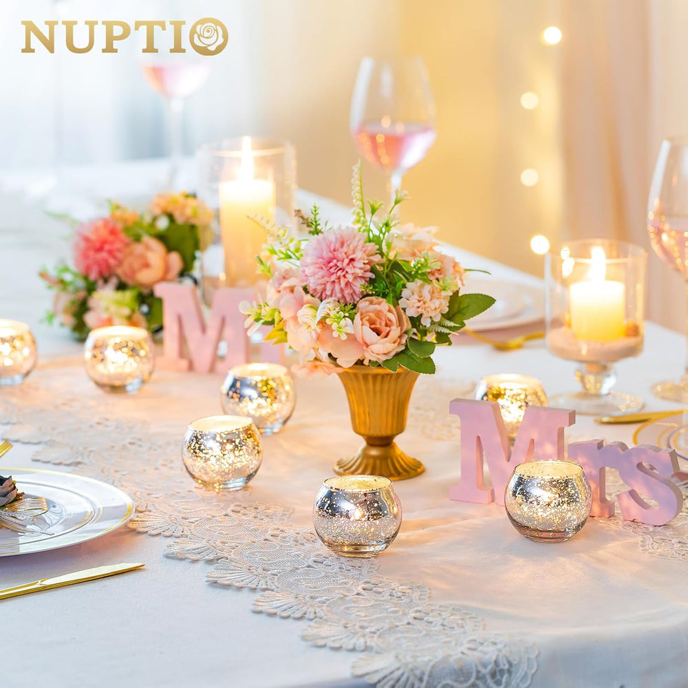 Nuptio 12 Stück Runde Quecksilber Votive Kerzenhalter, Aus Quecksilberglas mit Einem Gesprenkelten G